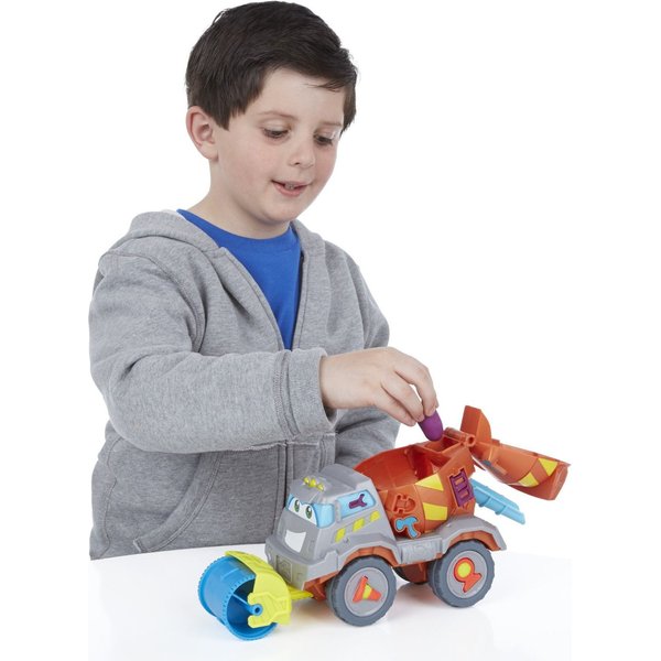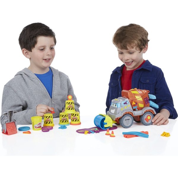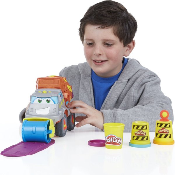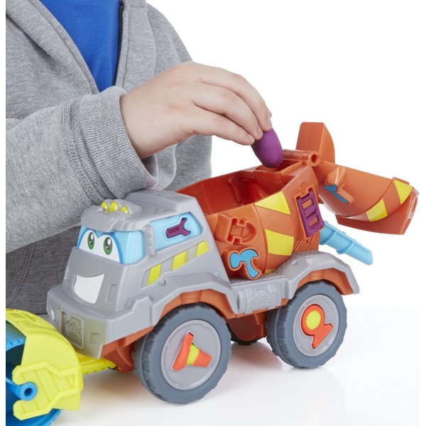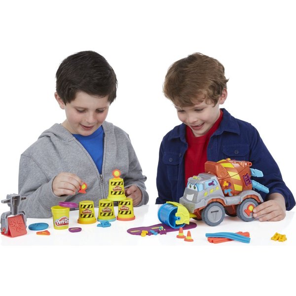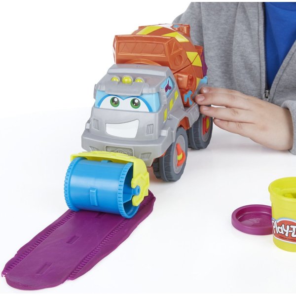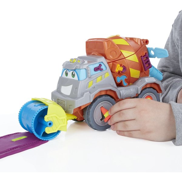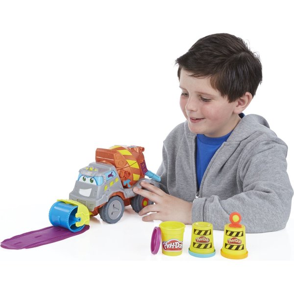 Betoniarka to zestaw, który pozwoli poczuć się jak na prawdziwym placu budowy! Dzięki dołączonym akcesoriom można stworzyć drogę. Przygotuj masę w betoniarce, a następnie użyj walca do rozwałkowania drogi. W zestawie jest również młot pneumatyczny! Dzięki specjalnym szablonom możesz stworzyć cegły, narzędzia pomocnicze oraz znaki ostrzegawcze.