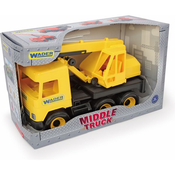Dźwig z serii middle truck to duża (37 cm długości) i bezpieczna zabawka dla dziecka. Nadaje się do zabawy zarówno w domu, jak i w piaskownicy. Dźwig bardzo realistycznie odzwierciedla prawdziwy pojazd budowlany. Wyposażony jest w ruchomy wysięgnik oraz opuszczany hak. Całość wykonana jest z lekkiego, ale wytrzymałego tworzywa sztucznego odpornego na warunki atmosferyczne. Produkt chętnie kupowany dzieciom ceniącym sobie wielofunkcyjność zabawek.