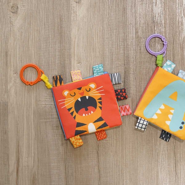 Miękka książeczka dwustronna do zawieszenia marki K's Kids to ciekawa zabawka, którą możesz zawiesić na wózku lub foteliku, aby Twój maluszek miał ją zawsze pod ręką.