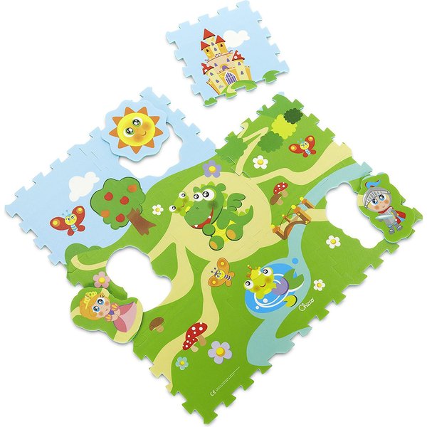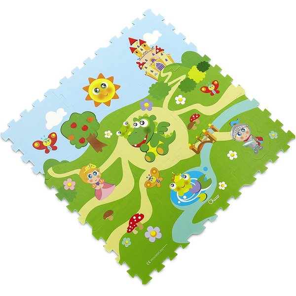 Mata składa się z 9 elementów, które przedstawiają charakterystyczne postacie z opowieści o księżniczce oraz walecznym rycerzu. Obrazki są w żywych, nasyconych kolorach, a sama mata jest bardzo wygodna, dlatego dziecko bez obaw może się na niej bawić, raczkować, a także turlać.