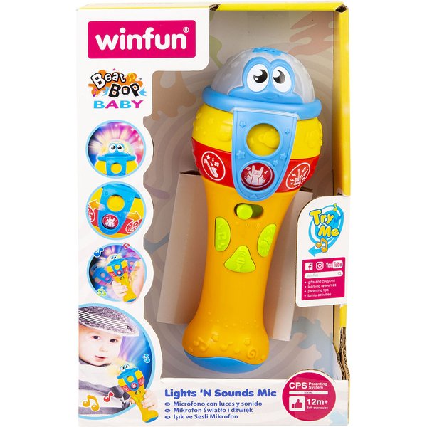 Zachęć malucha, by potrząsnął mikrofonem, aby uzyskać pogłos z ciekawymi efektami świetlnymi. Zabawka emituje też dźwięki wiwatów i oklasków publiczności.