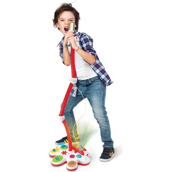 Efekty dźwiękowe i świetlne będą rozwijać zmysły malucha, bawiąc i ucząc jednocześnie. Podstawa mikrofonu wyposażona została w panel do sterowania efektami dźwiękowo - świetlnymi. Maluch podczas zabawy kształtuje u siebie poczucie rytmu i rozwija słuch.