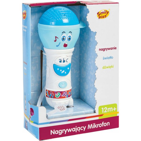 Mikrofon od Smily Play, który pozwala nagrywać własny tekst! Zaprojektowany dla małych dzieci ma kształt oraz wymiary, które idealnie dopasują się do małych rączek. Zachęca maluszka do rozwijania słuchu oraz mowy. Posiada magiczny przycisk "rec", który po naciśnięciu nagra ok. 12 sekund odgłosów, a następnie będzie można je odsłuchać. Dodatkowo posiada efekty świetlne oraz wesołe melodie i dźwięki.