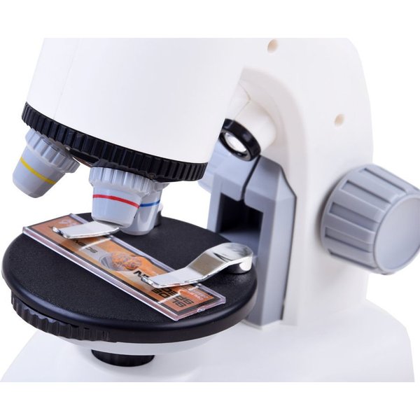 Intrygujący świat w skali mikro będzie teraz w zasięgu wzroku Twojego dziecka. Urządzenie pozwala na wstępne zapoznanie się z mikrobudową wielu elementów materii nieożywionej i świata przyrody. Proste urządzenie posiada obrotowy okular i trzy rodzaje powiększenia, aby dziecko mogło dostosować je do szczegółowości obserwacji. Wbudowana żarówka dobrze oświetla obserwowane preparaty, a brak konieczności podłączenie mikroskopu do gniazdka z prądem elektrycznym oznacza, że można swobodnie dokonywać obserwacji w wielu różnych miejscach.