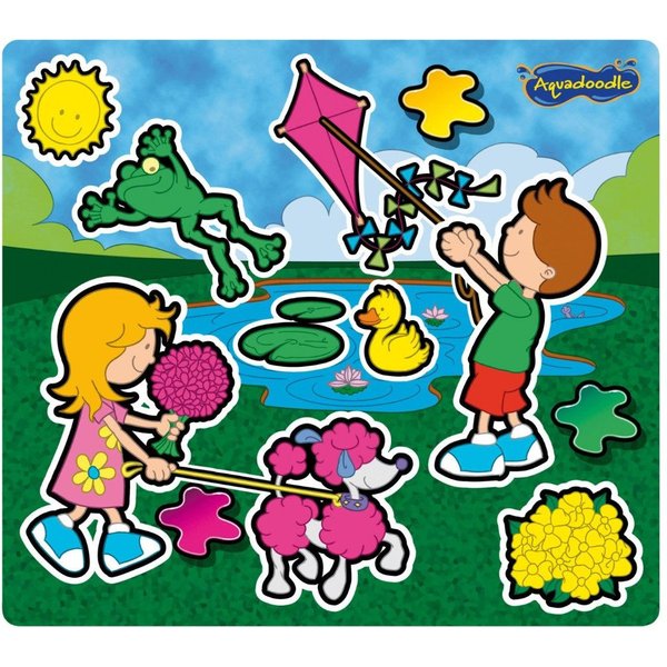 Na macie można tworzyć rysunki, które powstają dzięki specjalnemu wodnemu flamastrowi, wystarczy wykorzystać do tego trochę wody. Mata Aquadoodle zapewnia kreatywną, ale i czystą zabawę - magiczne rysunki po chwili znikają. Mata to idealne rozwiązanie dla początkujących artystów, zapewni czystą zabawę bez chlapania i brudzenia niezmywalnymi pisakami czy farbą!