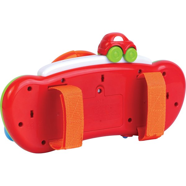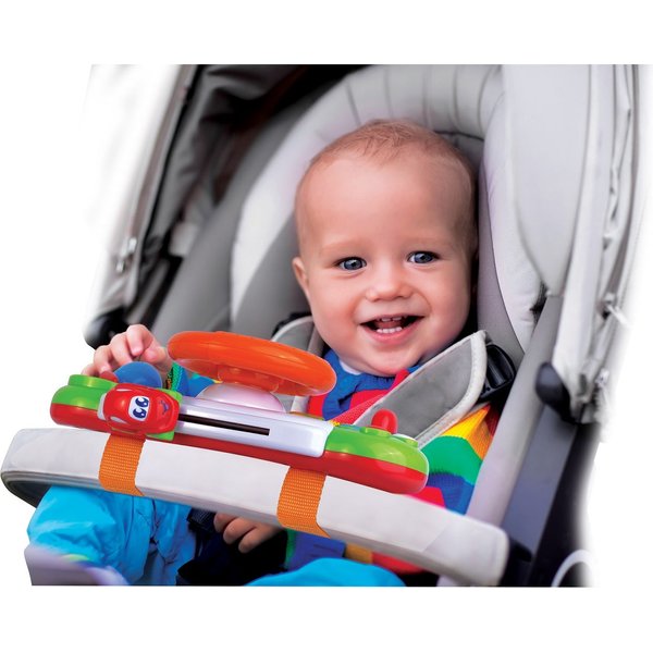 Panel do mocowania na pałąk wózka to świetna zabawka dla małych miłośników 4 kółek. Kryje on w sobie pełno interesujących funkcji. Guziczki do naciskania, ruchoma kierownica z klaksonem, kluczyk w stacyjce to największe zalety tej zabawki. Dodatkowo dzięki praktycznym taśmom z tyłu zabawki można przymocować ją do wózka dziecięcego. Już każda podróż malucha wózkiem nie będzie dla niego nudna.