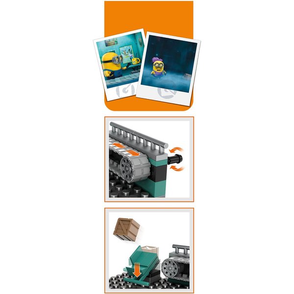 Zbuduj taśmę i wraz z Minionkiem przyjmij wszystkie paczki na magazynie. Kręć kołowrotkiem i obserwuj jak taśma się porusza! Można zbierać całą serię, odgrywać sceny z bajki lub tworzyć własne pomysły.