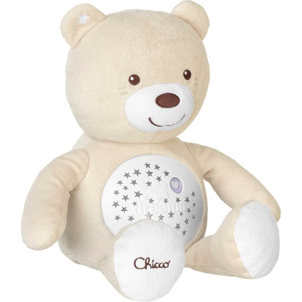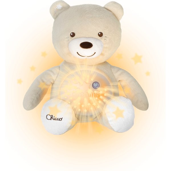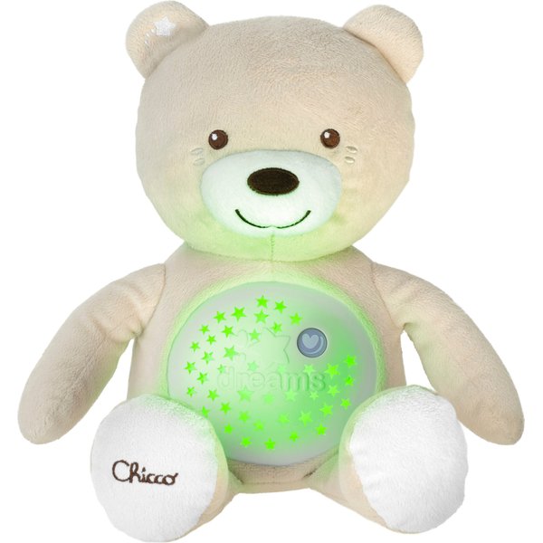 Miś z projektrem marki Chicco została specjalnie zaprojektowana, aby ułatwić zasypianie każdemu niemowlakowi. Jego brzuszek kryje niezwykłe atrakcje - po naciśnięciu puszcza melodyjki i pokazuje efekty świetlne, które będą towarzyszyć dziecku w drodze do krainy snu! Pomogą one maluszkowi się zrelaksować i poczuć bezpiecznie, a dyskretne i spokojne melodie nie będą go rozpraszać.