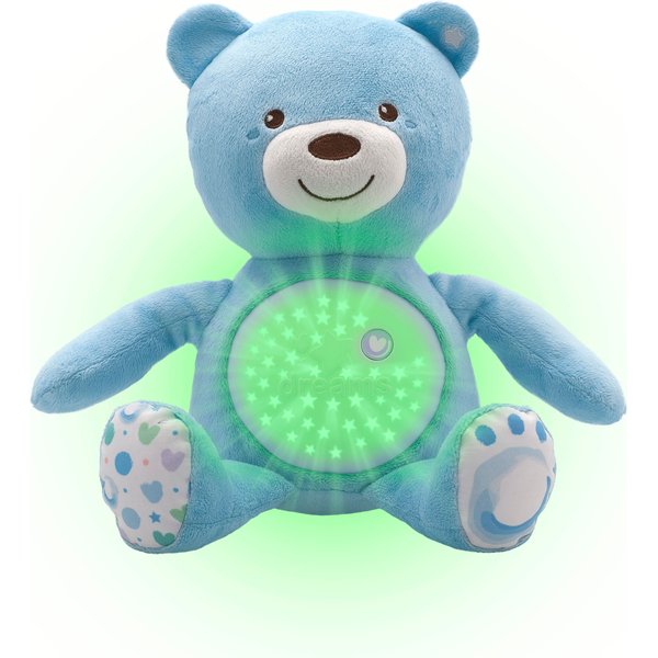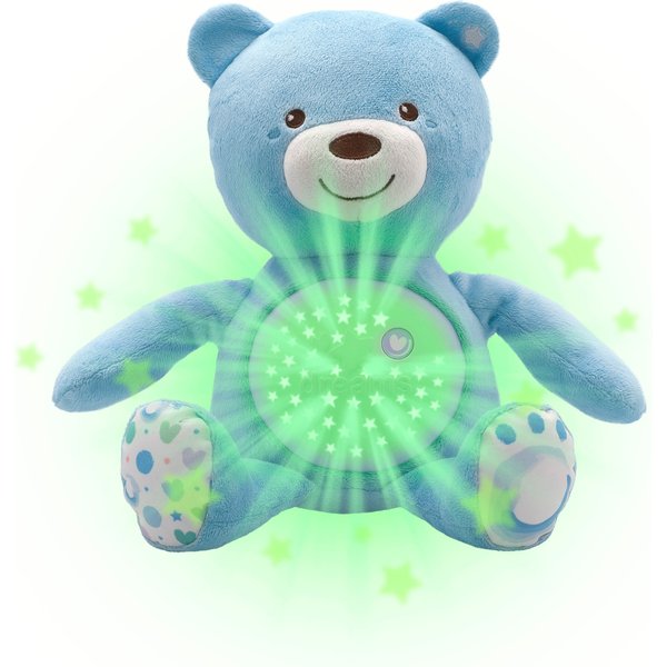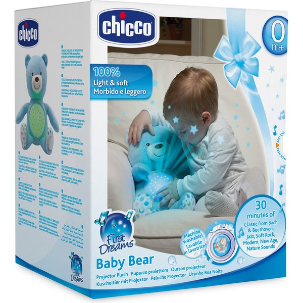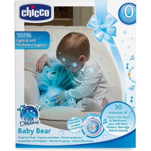 Przytulanka, która szybko stanie się nieodłącznym przyjacielem podczas snu dla Twojego dziecka. Miś z projektorem marki Chicco została specjalnie zaprojektowana, aby ułatwić zasypianie każdemu niemowlakowi. Jego brzuszek kryje niezwykłe atrakcje - po naciśnięciu puszcza melodyjki i pokazuje efekty świetlne, które będą towarzyszyć dziecku w drodze do krainy snu! Pomogą one maluszkowi się zrelaksować i poczuć bezpiecznie, a dyskretne i spokojne melodie nie będą go rozpraszać. Posiada bogaty wybór melodii, od klasycznych utworów Bacha i Rossiniego, kojących dźwięków natury, po spokojne utwory, dzięki czemu Twoje dziecko codziennie do snu może kołysać inna melodia. Całość zapakowana w piękne pudełko - idealne na prezent!