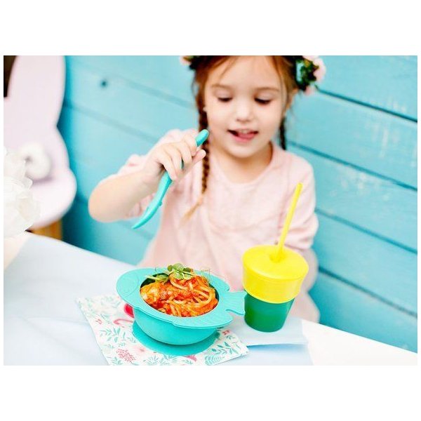 Przeurocza miseczka wykonana ze spożywczego silikonu z pewnością zachwyci nie jednego, małego łamkomczuszka! Posiada ona antypoślizgowe dno i przyssawkę, które zapobiegną wyrzuceniu jej lub zsunięciu się z krzesełka do karmienia. To sprawi, że większość dania trafi do brzuszka, a nie na podłogę. Nadaje się ona idealnie na posiłek poza domem. Z tą uroczą rybką obiad będzie z pewnością smakował!