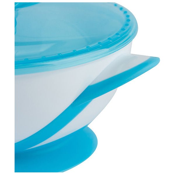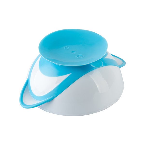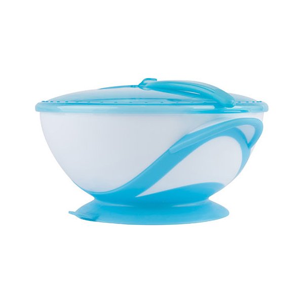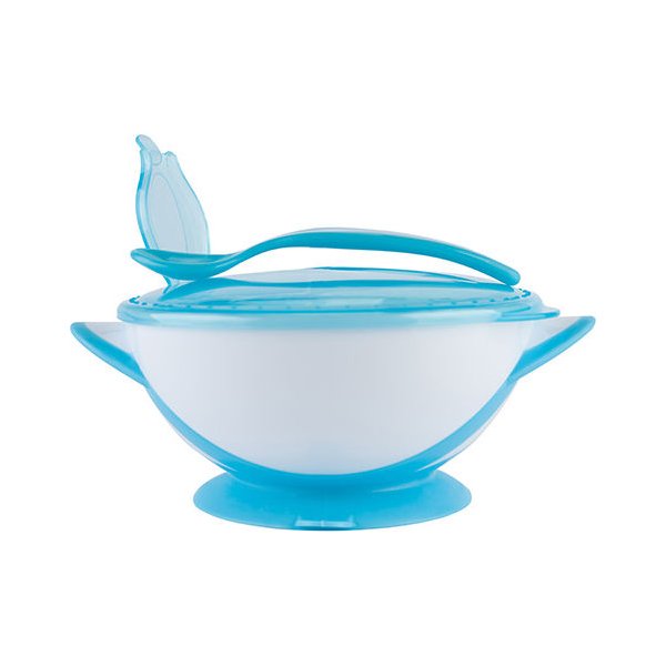 Miseczka z przyssawką i łyżeczką to produkt przydatny na spacerze lub w podróży. Miękka przykrywka szczelnie chroniąca pokarm została wyposażona w system ułatwiający przechowywanie, dzięki któremu łyżeczka nie zabrudzi się, ani nie zgubi. Gumowa przyssawka uniemożliwia przesuwanie się miseczki po stole. Wykonana z bezpiecznych materiałów przeznaczonych do kontaktu z żywnością, produkt jest całkowicie wolny od Bisfenolu A. Można ją stosować w mikrofalówce, a także myć w zmywarce.