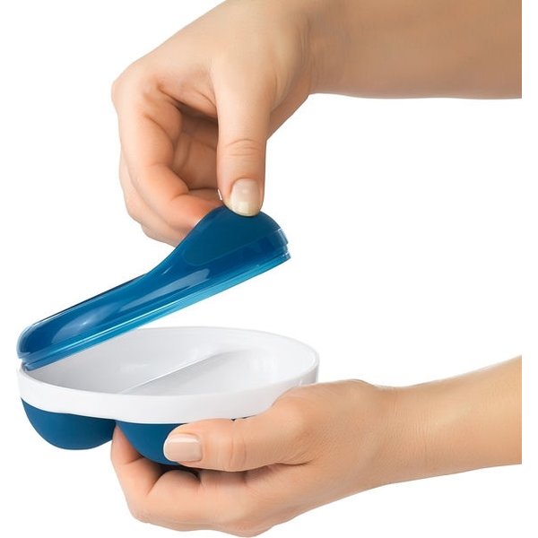 Miseczka posiada antypoślizgową podstawę, która zapobiega przesuwaniu się miseczki, dodatkowo produkt posiada przykrywkę, która umożliwia przechowywanie jedzenia w miseczce np. w lodówce.