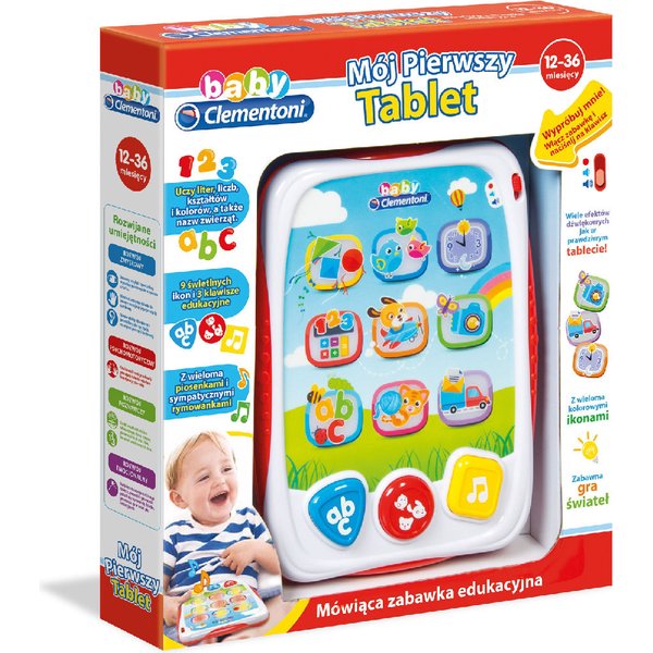 Kolorowy tablet pełen przycisków i wesołych obrazków od Clementoni.