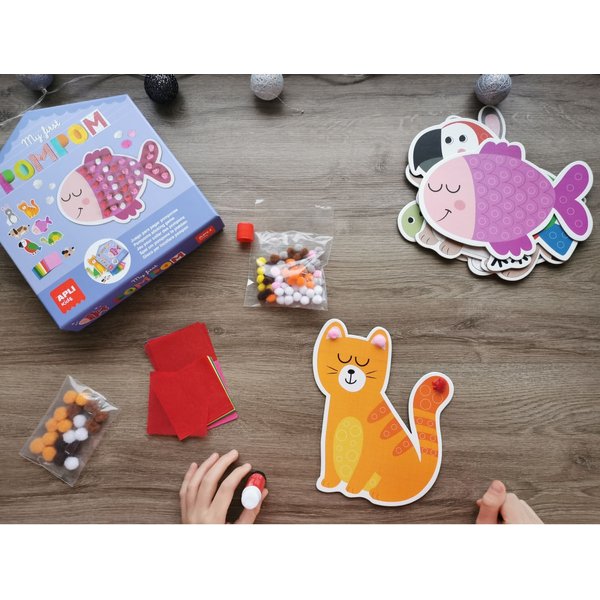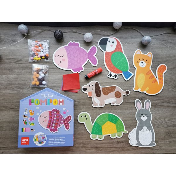 Mój pierwszy zestaw artystyczny Pompony marki Apli Kids to świetny sposób na nudę maluszka, któremu znudziło się kolorowanie.