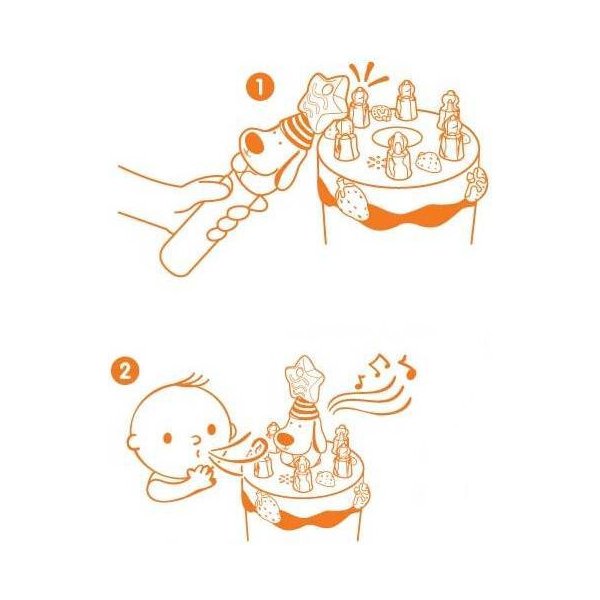 Twoja pociecha może zamienić się w czarodzieja - wystarczy, że weźmie kolorową różdżkę i dotknie nią przycisków na torcie w kształcie małych gwiazdek. Świeczki zaczną się palić coraz jaśniej, a wtedy maluch może pokusić się o ich zdmuchnięcie. Ale bez obaw - otwarty ogień nie wchodzi w grę! Kolorowe światełka pomogą dziecku rozwijać mięśnie jamy ustnej, a różdżka - zdolności manualne i koordynację ręka - oko. Przy okazji wesołej zabawy dziecko ćwiczy rozumienie zależności przyczynowo - skutkowych i słucha wesołej, urodzinowej melodii.