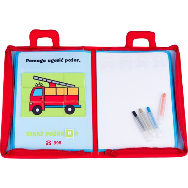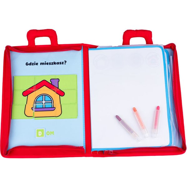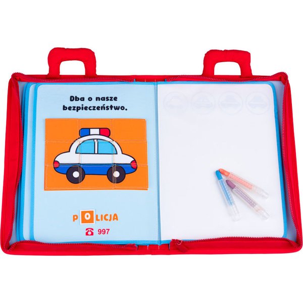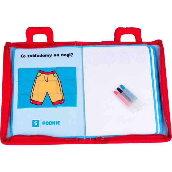 Pierwsza książeczka maluszka Mały Bystrzak od Jollybaby, która wspomoże maluszka podczas nauki malowania. Pozwoli krok po kroku wyjaśnić dziecku jak tworzyć wspaniałe rysunki. Dodatkowo wyposażona została w puzzle na rzep, które poniżej zostały podpisane. Do zestawu dołączone zostały magiczne gąbeczki oraz kredki, umożliwiające rysowanie po pustej stronie, a następnie jego zmazanie. Dobrej zabawie nie będzie końca! Książka posiada zapięcie na zamek błyskawiczny oraz wygodny uchwyt do przenoszenia.