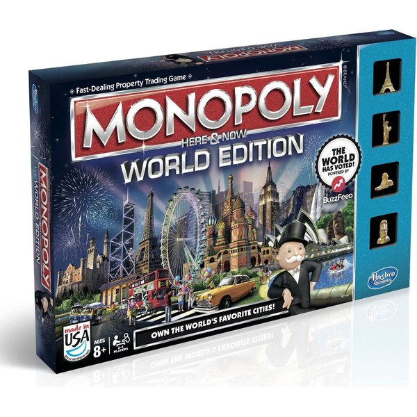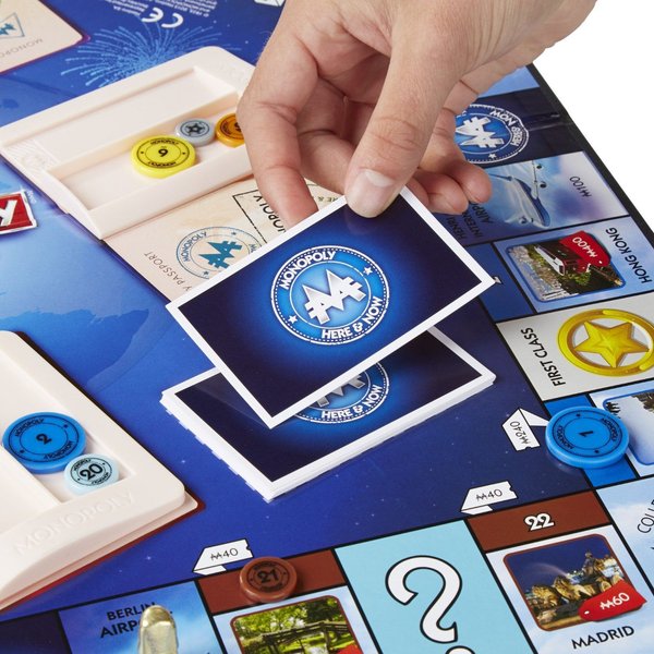 Monopoly to niezwykle popularna gra planszowa, którą pokochały rodziny na całym świecie. Odświeżona i nowoczesna wersja gry Monopoly Tu i Teraz od firmy Hasbro dostarczy jeszcze więcej frajdy i ekscytujących momentów. Dobór miast w tej wersji gry nie jest przypadkowy, zostały one wybrane poprzez głosy fanów z całego świata! Na planszy można znaleźć m.in. Rygę, Meksyk, Toki czy Warszawę.