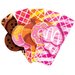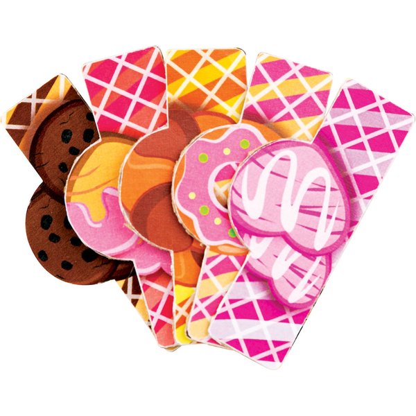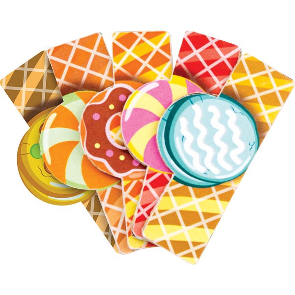 - ma 5 smaków lodów do wyboru, 2 rożki i 10 słodkich patyków do dekorowania