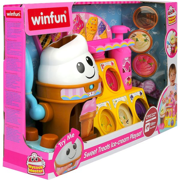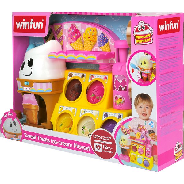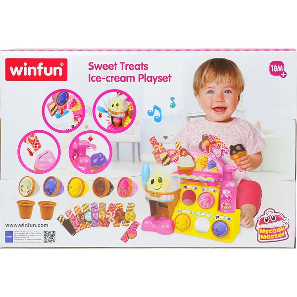 Podczas zabawy lodziarnia mówi różne frazy, zadaje pytania, gra melodie, wydaje dźwięki i świeci.