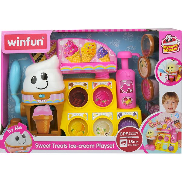Stoisko słodkościto zabawka, którą pokocha Twoje dziecko. W zestawie znajdują się wszystkie akcesoria do robienia smacznych lodów. Zabawka posiada dwa tryby zabawy: tryb uczenia i tryb zabawy. Włóż rożek do urządzenia, wybierz ulubiony smak lodów, pociągnij za uchwyt - Twój lód gotowy.