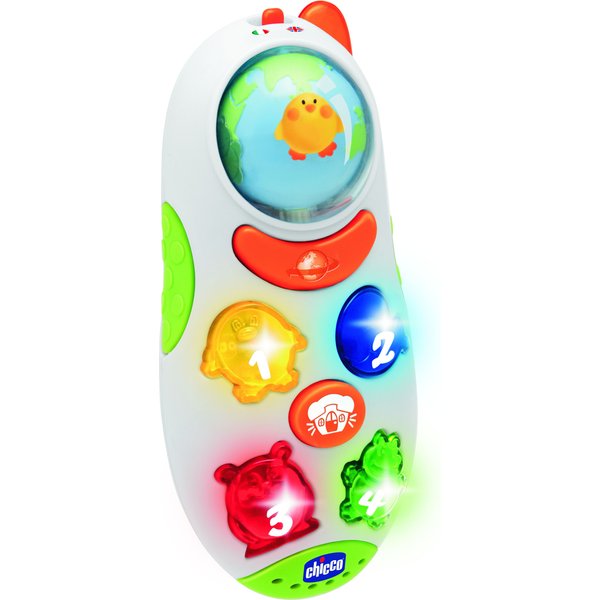 Interaktywna zabawka posiada przyciski w kształcie kolorowych zwierzątek, które świecą i odtwarzają odgłosy zwierząt oraz prawdziwe dźwięki telefonu. Mimo że dziecko nie będzie jeszcze rozumieć poszczególnych wyrazów, to zabawka pozwoli mu osłuchać się z brzmieniem języka i umożliwi przyswojenie nowych słów i dźwięków. Uwagę dziecka przykuje także obracający się globus, który będzie dopełnieniem dla całej zabawy.