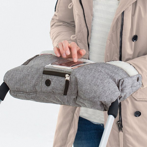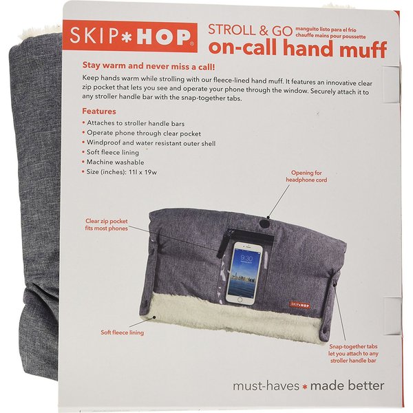 Mufka marki Skip Hop wypełniona jest cieplutkim polarem, które doskonale otuli dłonie i zapewni ciepło podczas zimowej aury. Z zewnątrz wykonana z nieprzemakalnego materiału.