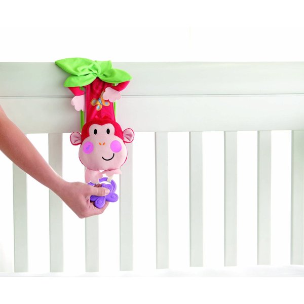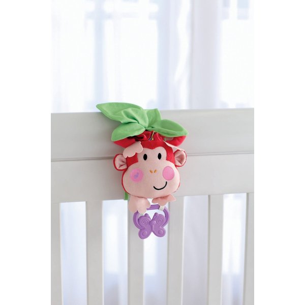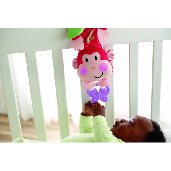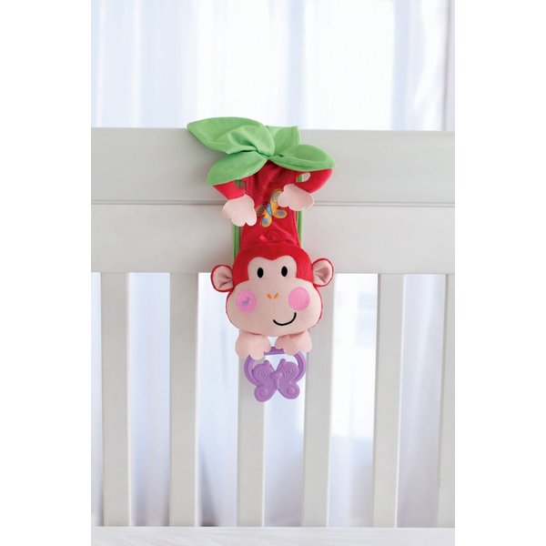 Ta łatwa do przymocowania pluszowa małpka z pozytywką będzie bawić maluszka podczas zabawy w łóżeczku.