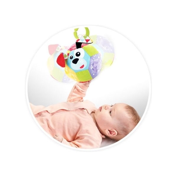 Piłka zachęca do aktywności fizycznej! Gdy maluszek podrośnie będzie chętnie gonił za uciekającą piłką ucząc się raczkować. Zabawka wspomaga rozwój umiejętności manualnych, koordynację ruchową oraz zmysł słuchu, dotyku oraz wzroku. Jest miękka i przytulna! Idealna do tulenia i rzucania.