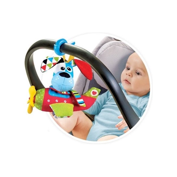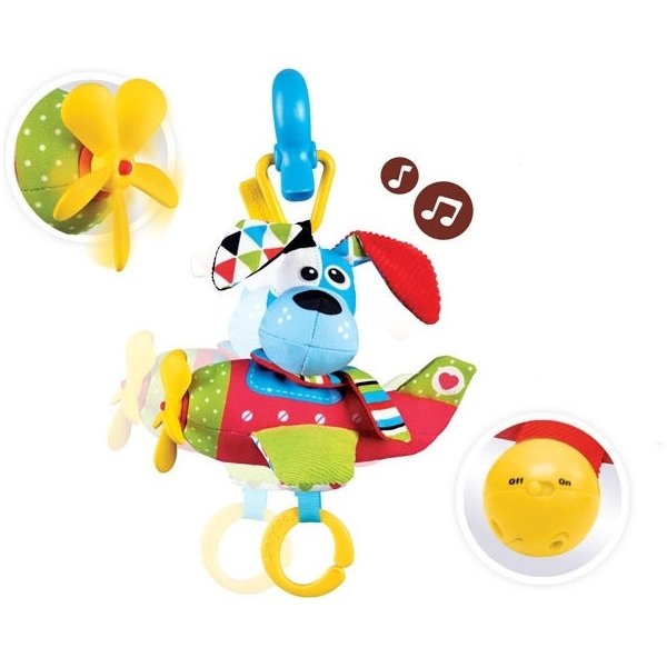 Samolot jest pełne atrakcji i różnorodnych faktur, które stymulują zmysły dziecka. Podczas potrząsania samolocik odgrywa wesołą melodię po włączeniu przycisku ON.