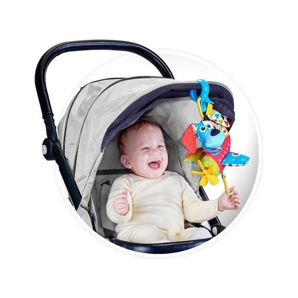 Duże uchwyty ułatwiają trzymanie zabawek małym rączkom. W zestawie także 1 sztuka zaczepu, dzięki któremu zawiesisz ulubioną zabawę malucha na macie, czy w wózku!