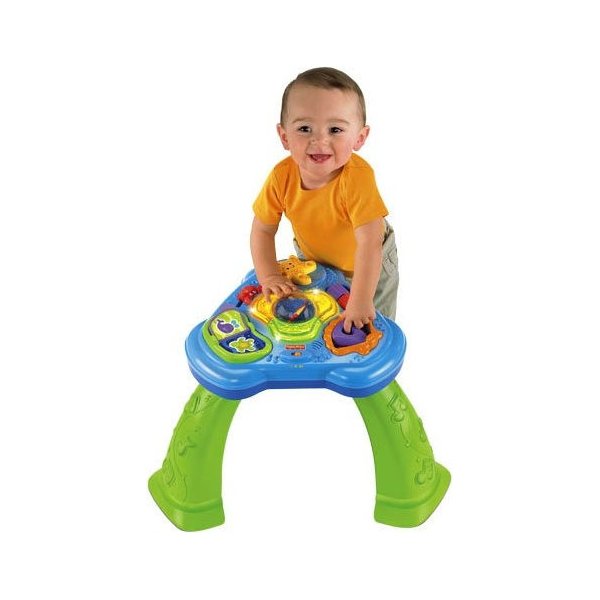 Wesołe postacie, światła i dźwięki zachęcają dziecko do poruszania się wokół stolika i poznawania jego możliwości.