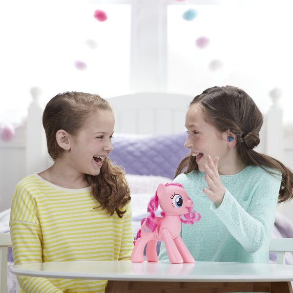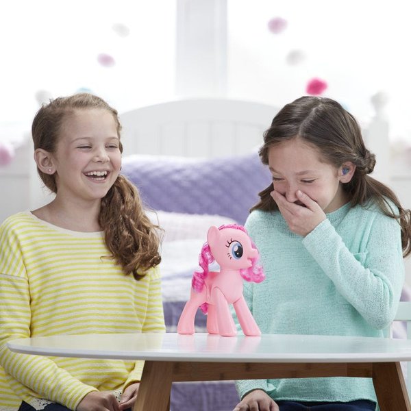 Roześmiana Pinkie Pie to bardzo wesoła postać bajki My Little Pony. Wystarczy ją pogłaskać po brzuszku lub główce, a ona zacznie chichotać, wierzgać nogami i wybuchać śmiechem. Dodatkowo Pinkie Pie posiada w buzi czujnik ruchu - pomachaj ręką nad czujnikiem lub przejdź obok postaci, a zobaczysz niespodziankę!