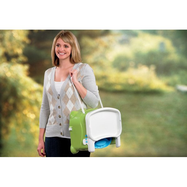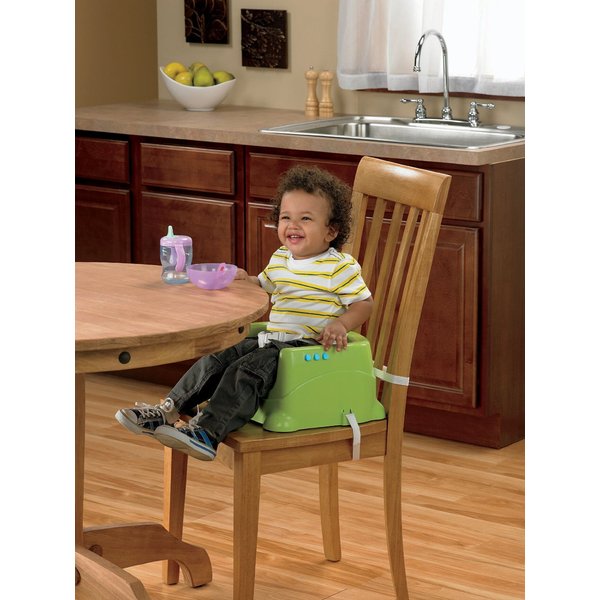 Krzesełko bez problemu można ze sobą zabrać na wakacje czy wycieczkę. Może też być miejsce zabaw dla malucha, dzięki podstawce z zabawkami. Na tacce maluch odkryje wędrującego żółwika, który przesuwa się, żyrafę, która ma na szyi kolorowe krążki do zabaw oraz słonika, który kiwa główką. Najwięcej atrakcji oferuje umieszczone centralnie obracające się drzewko z elementami do manipulowania, zapewniając dziecku zabawę manualną i stymulując wzrok.