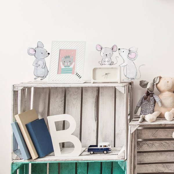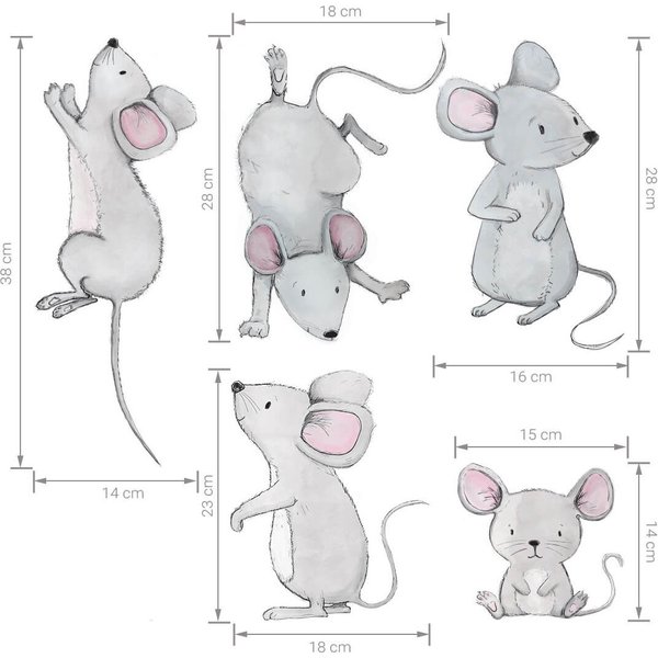 Uniwersalne pastelowe naklejki z rodzinką wesołych myszek spodobają się każdemu maluszkowi, szybko odmieniając nudny kolor ścian bez konieczności kłopotliwego malowania lub przyklejania tapety. Naklejki wykonane zostały z bezpiecznej dla dzieci najwyższej jakości folii, pokrytej matowym laminatem. Wykazują dużą odporność na zarysowania, a dzięki temu, że nie posiadają tła, możesz je nakleić na podłożu o dowolnym kolorze.
