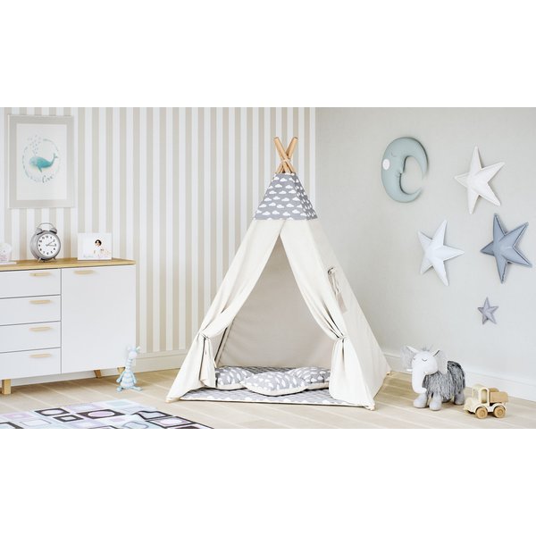Niesamowite Tipi, które wprowadzi maluchów w świat wyobraźni i zabawy pełnej kreatywności. Stanie się ono przytulnym miejscem zabaw, odpoczynku, a nawet snu. Wykonane zostało z materiałów najwyższej jakości co sprawa, że będzie nam służył przez dłuższy czas. Ponieważ stworzony został z myślą o najmłodszych, posiada bezpieczne elementy, które nie podnoszą ryzyka urazu u maluszka. Dzięki czemu czas spędzony na zabawie będzie spokojny.