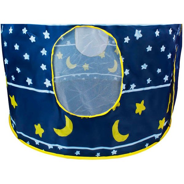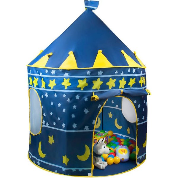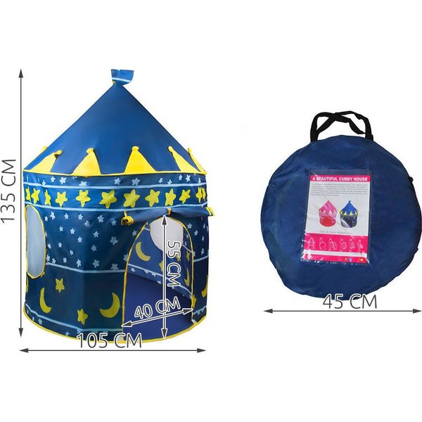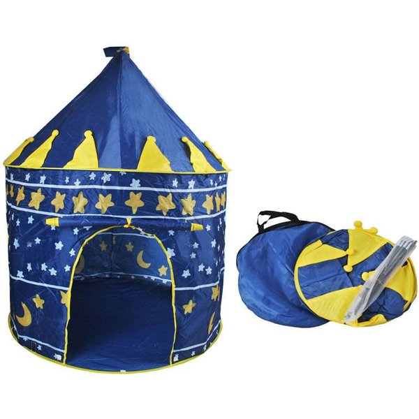 Namiot dla dziecka, który doskonale sprawdzi się w domu lub ogródku. Dzięki czemu maluch skorzysta z niego nie tylko gdy za oknem słońce, ale również w deszczową pogodę. Swoim wyglądem przypomina zamek, co pozwoli dziecku wejść do krainy wyobraźni i kreatywności. Bardzo łatwy w składaniu i rozkładaniu pozwoli szybko przetransportować go do domu w razie pogorszenia pogody. Wyposażony w dwa okienka z drobnej siatki oraz wejście, które odpinane jest na rzepy.