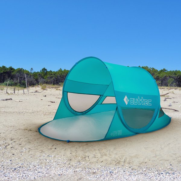Samorozkładający się namiot plażowy marki Outtec, jest niezawodnym i obowiązkowym wyposażeniem każdego plażowicza, który ceni komfort podczas wypoczynku. Wytrzymała konstrukcja, składająca się z technicznych i odpornych na uszkodzenia mechaniczne tkanin, posiada wbudowaną dodatkową ochronę przed promieniowaniem słonecznym UPF 50. Namiot może więc służyć, jako ochrona podczas zabawy wśród najmłodszych, których skóra jest najbardziej narażona na czynniki zewnętrzne.