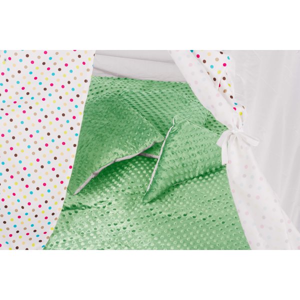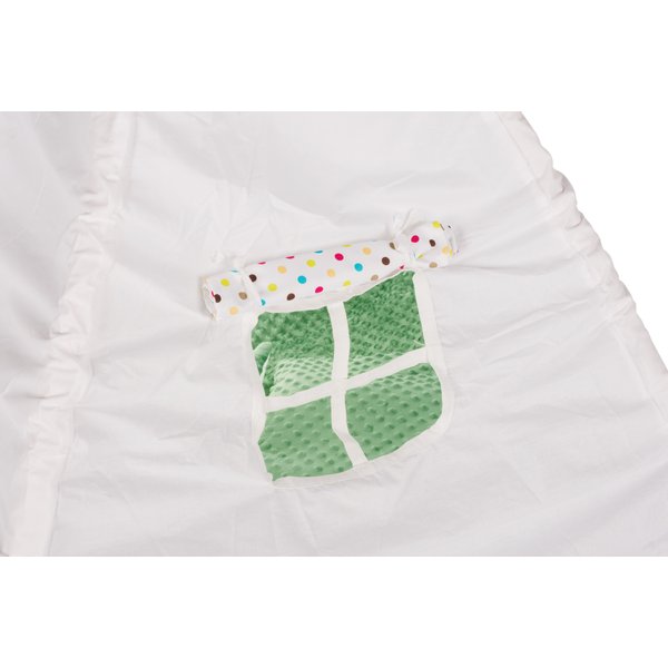 - namiot posiada miękką matę i poduszki z materiału Minky
