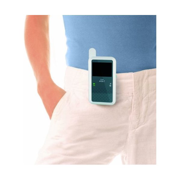 Wyposażony w akumulator odbiornik umożliwia przemieszczanie się po domu bez utraty kontaktu z dzieckiem.