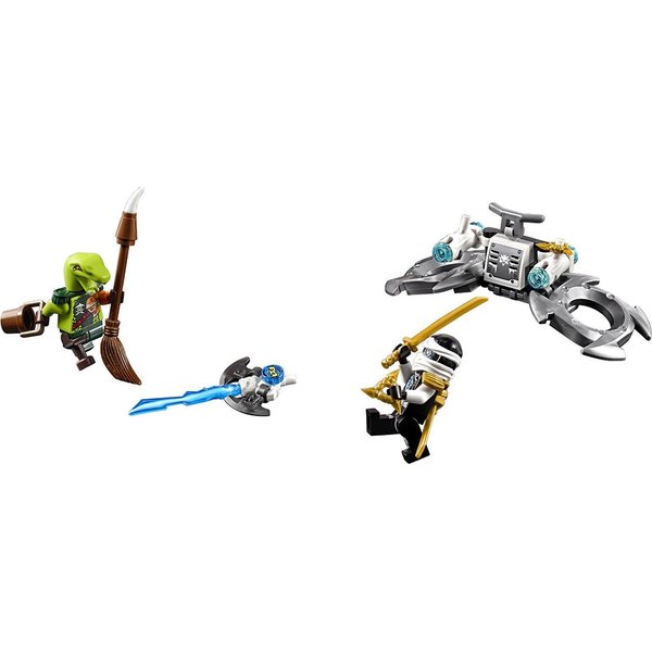 Armia piratów zamierza zniszczyć wojowników Ninja! Ruszaj wraz Zanem, by pokonać przeciwników. Dosiądź podniebnego pojazdu i wzbij się w przestworza, a później zaatakuj piracki statek podniebny. Uważaj na wystrzeliwane przez pirata dynamitowe pociski i zrób wszystko, by wrogi pojazd uległ całkowitemu zniszczeniu!