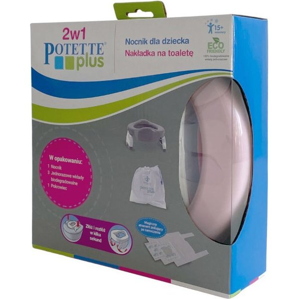Potette Plus to tradycyjny nocnik i nakładka na toaletę w jednym, który zdecydowanie ułatwi zarówno rodzicom, jak i dziecku przejście okresu odpieluszkowania i nauki samodzielnego korzystania z toalety. Nóżki można łatwo i szybko rozłożyć i złożyć tworząc nocnik lub nakładkę - to proste! Dzięki niewielkim wymiarom oraz wadze to idealny wybór zarówno do domu, na spacer, jak i długich podróży.