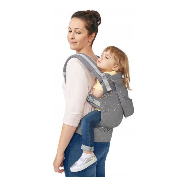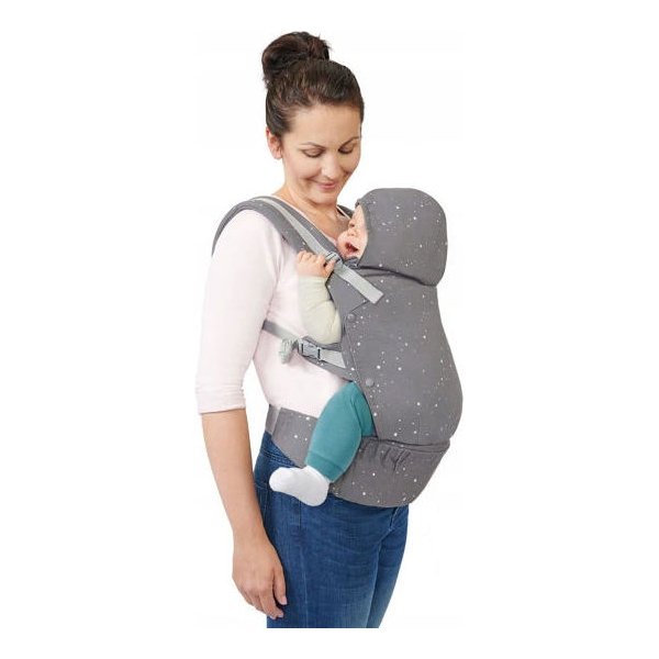 Specjalny system szybkiej i prostej regulacji pozwoli odpowiednio ustawić nosidełko, aby zapewniało najbardziej komfortową pozycję. Nosidełko wyposażone zostało również w odpinany kapturek, który ochroni przed nieprzyjemnymi warunkami atmosferycznymi oraz podtrzyma małą główkę. Model Huggy to również komfort dla rodzica. Specjalne osłonki naramienne pozwolą na wygodne noszenie maluszka, bez obaw o otarcia. Dodatkowa kieszonka pozwoli przechować drobiazgi bez konieczności zabierania ze sobą torebki. W momencie gdy go nie używamy, złożymy go do kompaktowych wymiarów, co znacząco wpłynie na jakość podróżowania z nim.