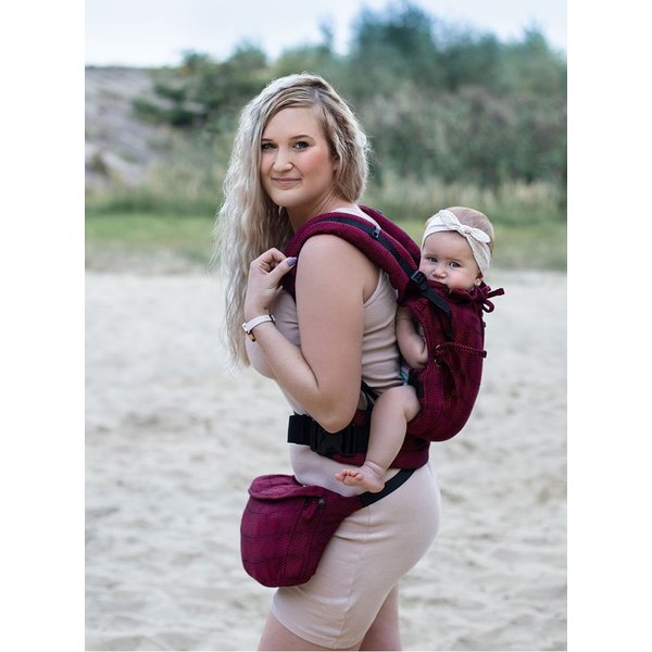 Dużą zaletą nosidełka Multi Soft jest także regulowany na rzep panel z możliwością odwijania na zewnątrz. Dzięki temu możesz go zmniejszyć w miarę potrzeb. Z pewnością docenisz także miękkie wypełnienie pasów naramiennych i miejsca pod kolankami dziecka. Szelki i pas biodrowy nosidełka mają bardzo dużą możliwość regulacji na szerokości i wysokości, co pozwala na optymalne dopasowanie dla każdego rodzica, niezależnie od budowy ciała. Jeśli chcesz, możesz także krzyżować pasy naramienne. W pasie biodrowym znajduje się mała kieszonka, która pomieści najpotrzebniejsze drobiazgi.