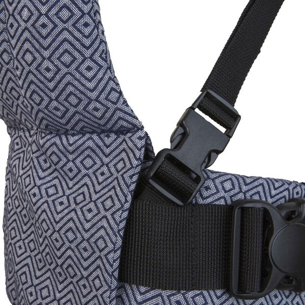Nosidełko wyposażone jest również w regulowane szelki równomiernie rozkładające ciężar dziecka oraz miękki pas biodrowy z możliwością regulacji. Zastosowano także dodatkowe wypełnienie wokół otworów na nóżki, które pozwala przenosić dziecko przez dłuższy czas zapewniając mu niezmienną wygodę. Na uwagę zasługuje także zintegrowany kapturek, który w razie potrzeby chroni główkę dziecka przed słońcem, podtrzymuje ją gdy śpi oraz zapewnia dodatkową osłonę podczas karmienia piersią.