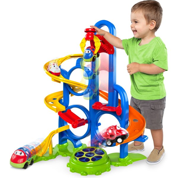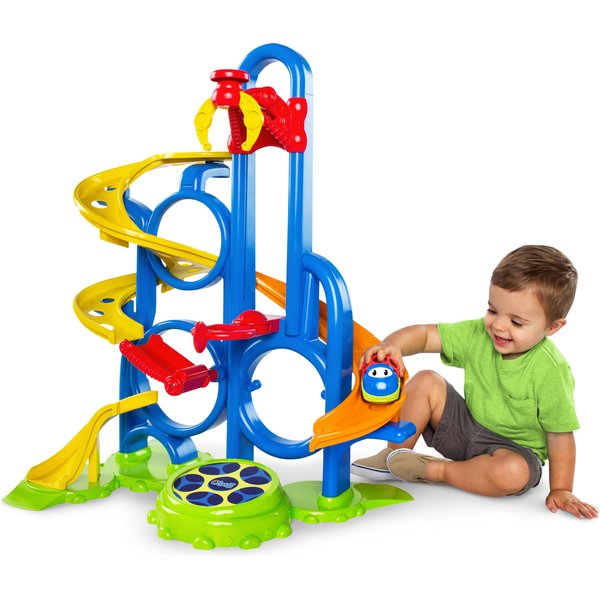 Oball-owa zjeżdżalnia z samochodzikiem to wyjątkowa zabawka dla maluszka kochającego motoryzację .Zbuduj wysoki tor pełen szalonych zakrętów i różnych atrakcji. Unieś autko za pomocą dźwigu, a później zrzuć je w dół na trampolinę. Obserwuj jak samochodzik odbija się i wyskakuje w powietrze! Zjeżdżaj w dół po różnych elementach trasy i odgrywaj wymyślone historie.