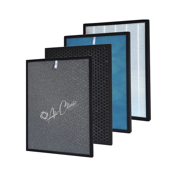 - filtra cząstek stałych HEPA - zastosowany w Air Clinic wysokowydajny True HEPA- to ceramiczny filtr o mikroszczelinach wielkości 0,1 μm (mikrometra). Z powietrza przechodzącego przez filtr usuwa ponad 99% cząstek stałych o wielkości 0,1μm. Zapobiega on rozprzestrzenianiu się bakterii i wirusów przenoszonych drogą powietrzną. Jego powierzchnia to około 2 m2. Wychwytuje pyły PM 2,5 , PM10, roztocza , pleśń, wirusy, bakterie, dym tytoniowy, kurz.