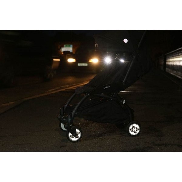 Pasują do koloru stelaża wózka a jednocześnie są 100 razy bardziej widoczne od nieodblaskowych materiałów.