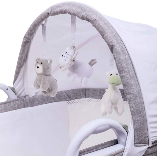 Kosz Mojżesza Purflo zapewni dziecku nie tylko bezpieczeństwo, ale również oddychalność, która zapobiegnie przegrzaniu się maluszka. Cyrkulację powietrza ułatwiają materac oraz boczne panele (przy główce i stopach) z siatki 3D. To wszystko sprawi, że wypoczynek w nim będzie niezwykle komfortowy dzięki czemu maluch będzie mógł spokojnie nabrać sił na zabawę, a jest z czego korzystać! W zestawie znajdują się akcesoria, które na pewno uprzyjemnią dziecku czas. Są to 3 wiszące zabawki, które pozwolą stymulować zmysł wzroku oraz moduł z dźwiękami natury, kołysankami, wibracjami, które wpływają pozytywnie na zmysł słuchu. Kosz Purflo dzięki automatycznym zatrzaskom jest bardzo łatwy w montażu i demontażu, a obecność specjalnej rączki ułatwi jego przenoszenie co sprawi, że możemy mieć maluszka zawsze obok siebie. Obecny koszyk do przechowywania pozwoli mieć najważniejsze rzeczy zawsze pod ręką.