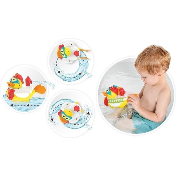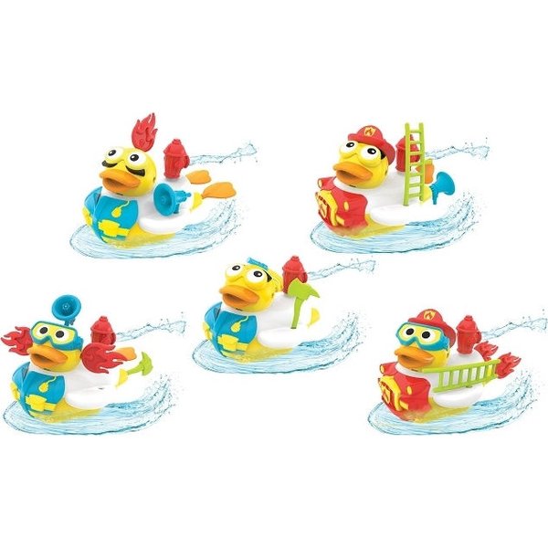 Odrzutowa kaczka Strażak sprawi, że każda kąpiel będzie niezapomnianą zabawą! Do kaczki dołączone jest aż 15 akcesoriów, dzięki którym maluch stworzy jej taki wygląd, na jaki będzie miał ochotę. Taka strażacka kaczka to świetna zabawka. Zabawka pływa po wodzie i posiada specjalną obrotową armatkę, dzięki której można kontrolować tor pływania zabawki. Do zabawki dołączony jest specjalny pojemnik mocowany do wanny, do którego można zebrać wszelkie akcesoria do zabawki.
