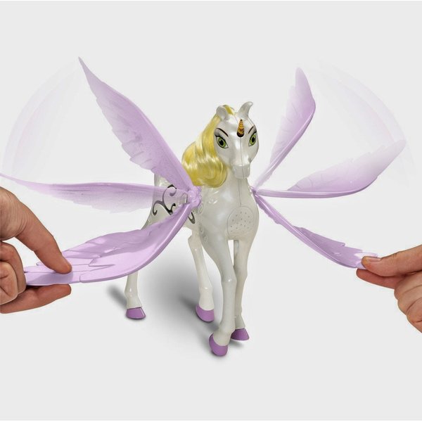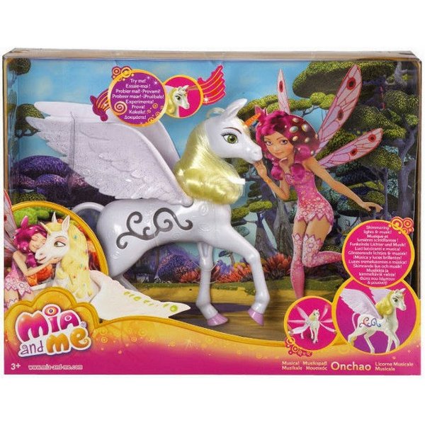 Odtwarzaj swe ulubione sceny - naciśnij róg, by usłyszeć piosenkę przewodnią z serialu "Mia i ja" i aktywować wielokolorowy świetlny wzorek. Onchao ma błyszczące,ruchome skrzydła!